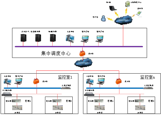 应用层:这一层为监控系统的大脑,主要实现升降柱控制器与监控站之间的通信。与监控室部署监控计算机与监控软件,实现监控室对整个区域内的所有升降柱进行监控,实时监视升降柱的状态,对其实现相关控制(单个升降柱控制,分组控制,成组控制等),负责整个系统控制方案的产生、判断、下发,具体执行数据的登陆、汇总、存档、报表生成、信息显示等功能。