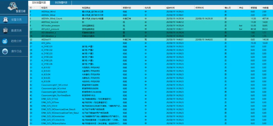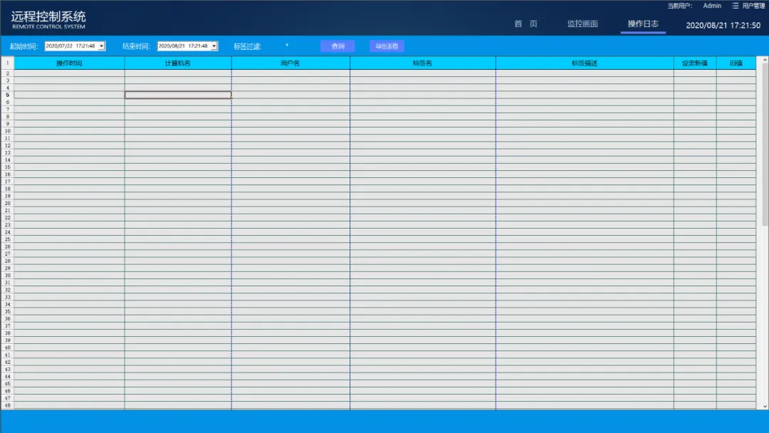 当系统中有人对相关设备等进行了操作,系统都会记录相关操作计算机的操作事件记,录记录的内容包括 :操作时间、计算机名、用户名、标签点名、标签点描述、设定新值、旧值和设置结果等;用户可根据相关设定条件(如时间,具体标签等)对事件记录进行查询,操作日志可设置起始和终止时间,可对标签名进行过滤,可将查询结果导出表格,方便用户进行事件追溯。