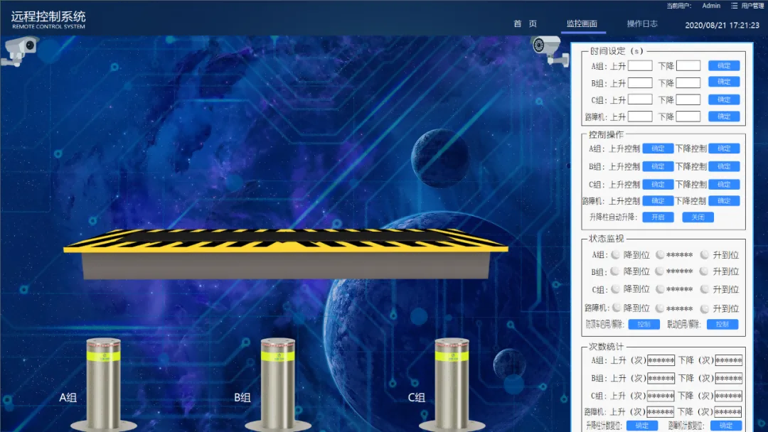 对各个区域升降柱的实时运行状态、设备参数进行集中监控。实时监控升降柱的运行状态及相关参数,及时、准确的掌握升降柱的运转情况,紧急情况下可自动联动升降柱动作,保证升降柱的安全、可靠和经济运行。