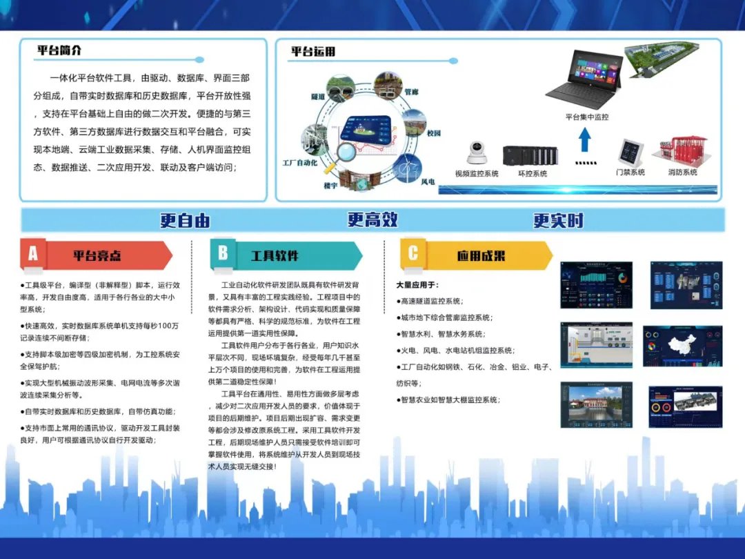 公司开发的工业实时历史数据库软件、数据采集系统软件、上位机人机界面组态软件、广域监控组态软件、综合监控软件、移动监控软件(微信小程序、APP)、远程运维系统、云端监控软件等产品,广泛应用于水电站、火电、风电、水处理、隧道、管廊、制造业等各行各业的自动化、工业互联网、综合监控、数字工厂、智慧园区等项目中。