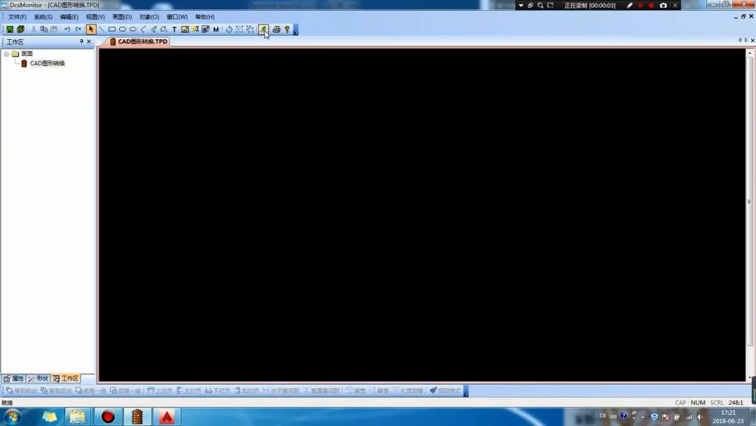 将具有CAD导入功能的iSee画面放置在Pic目录下,打开该画面后在画面上显示如上图所示,之后点击运行。